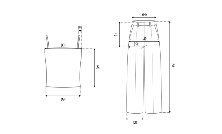 | SIZE | 총장(A) | 허벅지(K) | 힙(J) | 허리(H) | 밑위(I) | 밑단(G) |